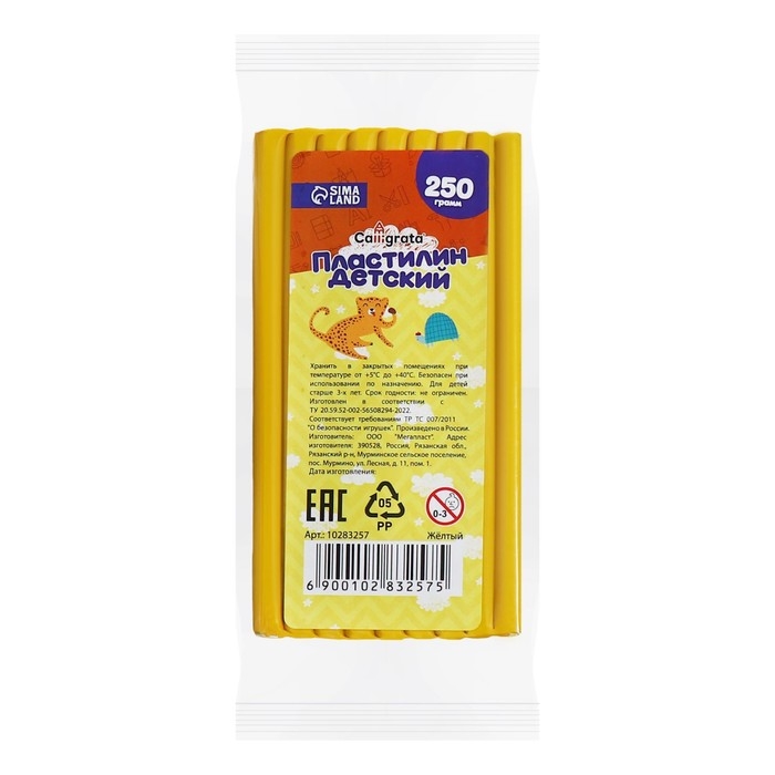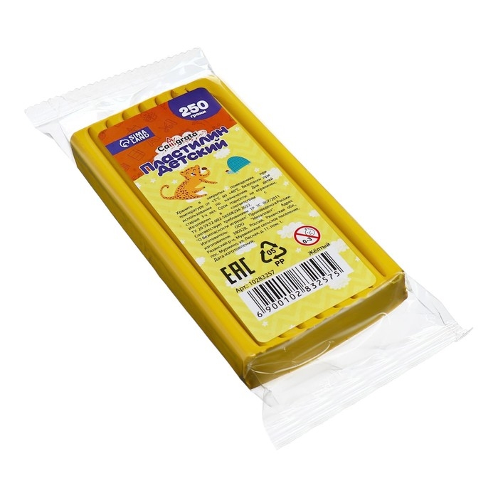 Пластилин 250г Calligrata Классический, жёлтый