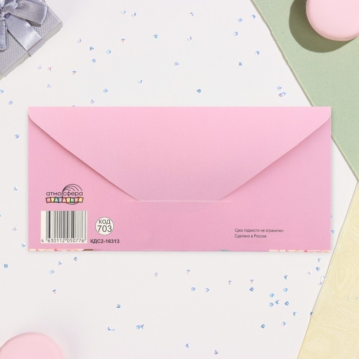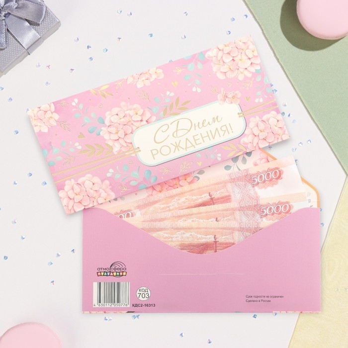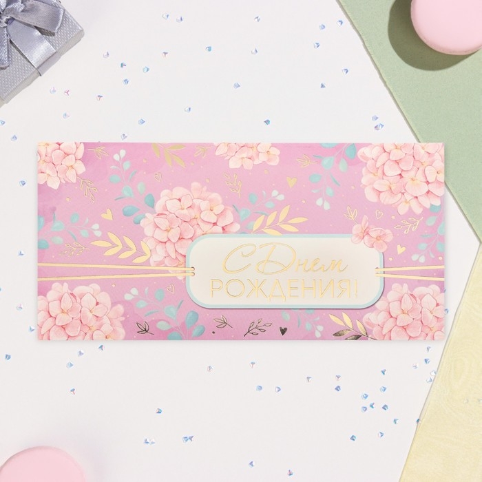 Конверт для денег "С Днём Рождения!" тиснение, 8 х 17 см