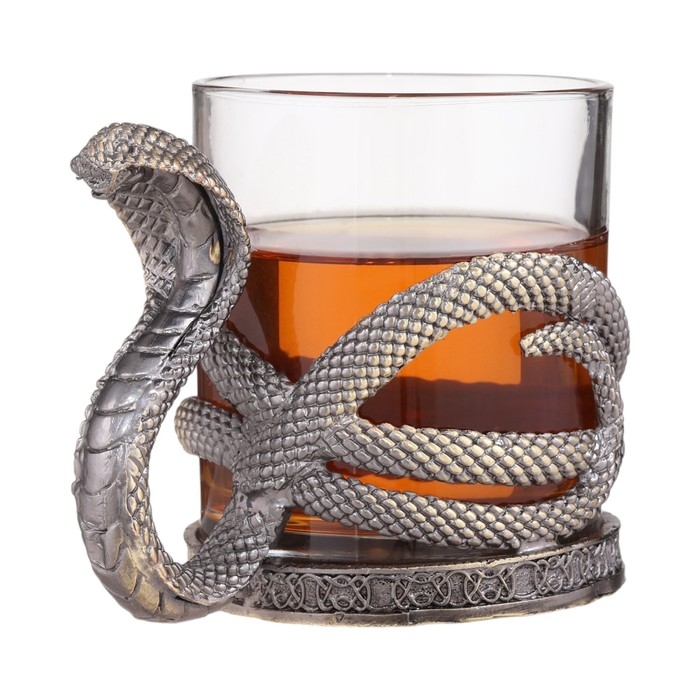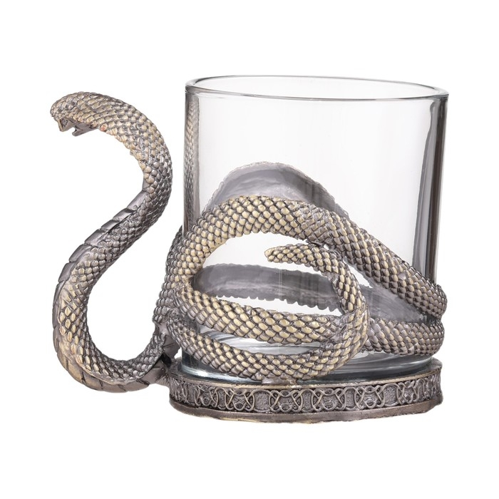 Стакан для виски "Кобра" - это изысканный и стильный аксессуар, который станет прекрасным дополнением к вашей коллекции посуды. Имеет классическую форму, которая идеально подходит для подачи любого крепкого напитка. Уникальная форма и дизайн ручки, в виде силуэта змеи, придает особую магию и элегантность. Змея символизирует силу, мудрость и хитрость. В разных культурах может олицетворять бессмертие, перерождение и исцеление. Объем бокала составляет 300 мл, что является оптимальным для подачи виски. Такой объем позволяет насладиться напитком в полной мере. Размеры также продуманы до мелочей: высота - 9.6 см, ширина бокала с ручкой – 12 см, верхний диаметр фужера - 7.9 см, нижний диаметр - 8.2 см, обеспечивают удобство использования.