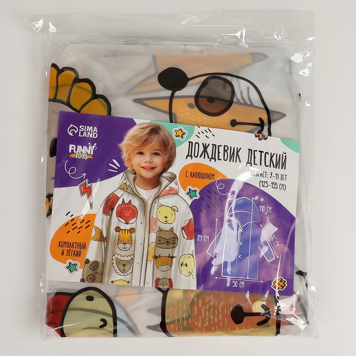 - Размер дождевика рассчитан на детей ростом от 125 до 155 см.