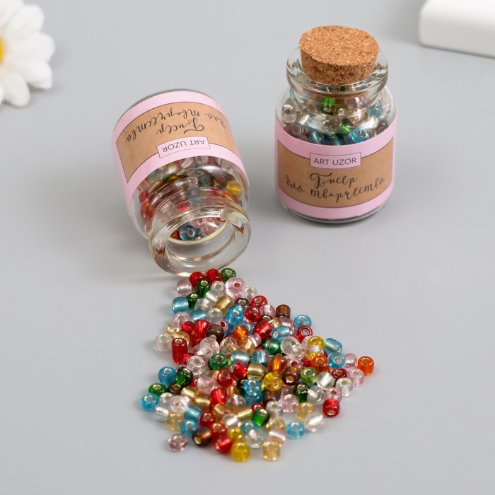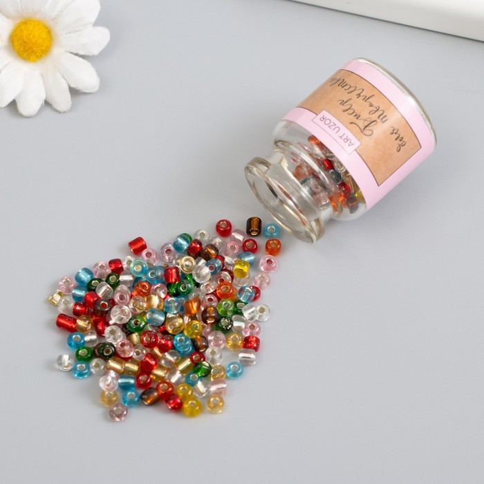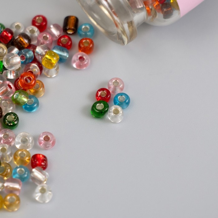 Бисер круглый 6/0 в бутылочке "Разноцветный" прозрачно-цветной 2х20 гр набор 2 шт