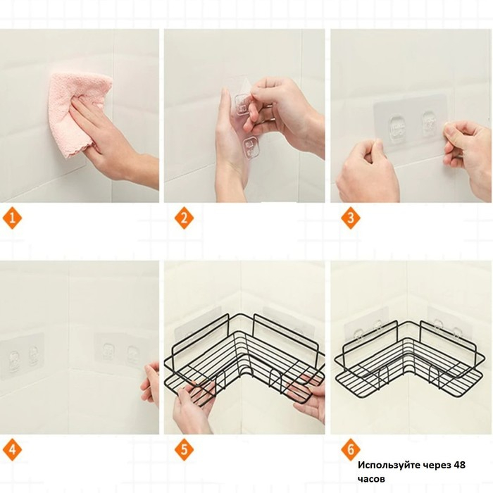 Полка угловая Доляна, 2 крючка, 26×26×10 см, цвет чёрный