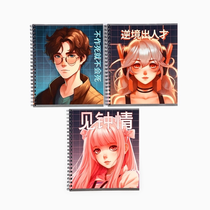Тетрадь А5, 48 л на спирали, внутренний блок №1 МИКС «Аниме. Фразы»