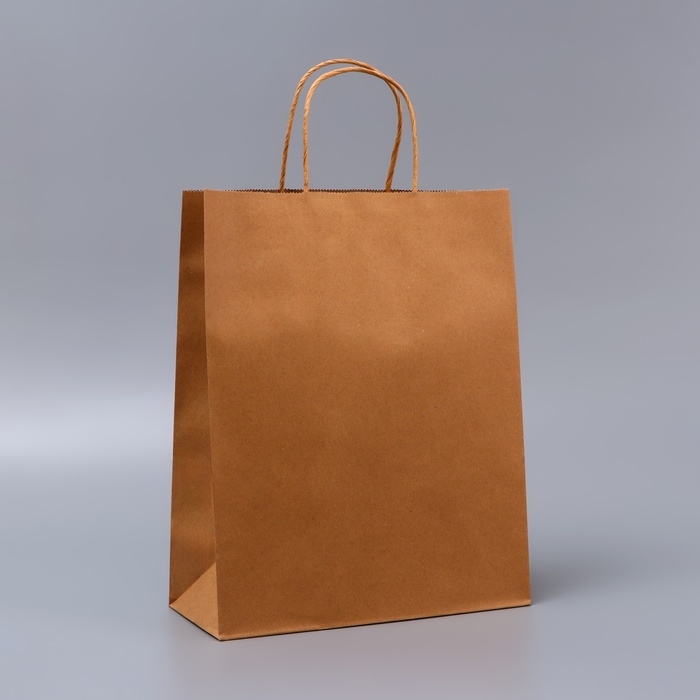 Пакет крафт без печати, круглая ручка, 26 х 12 х 33 см, 120 г
