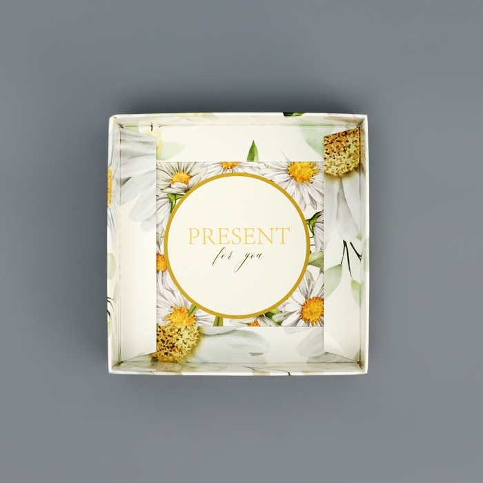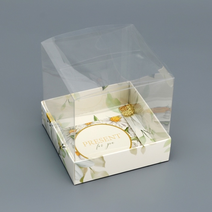 Коробка сборная с PVC крышкой, "Ромашки", 10 х 10 х 10 см. Кондитерская упаковка