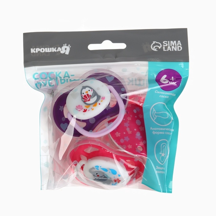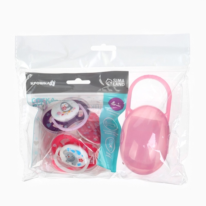 Соска - пустышка анатомическая Крошка Я "Для девочки" от 6 мес., 2 шт., держатель 1 шт. + контейнер