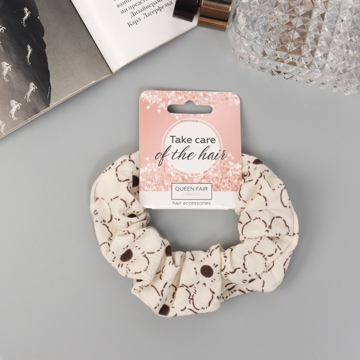Резинка для волос "Орбита" цветы стиль, 10 см, коричнево-бежевый
