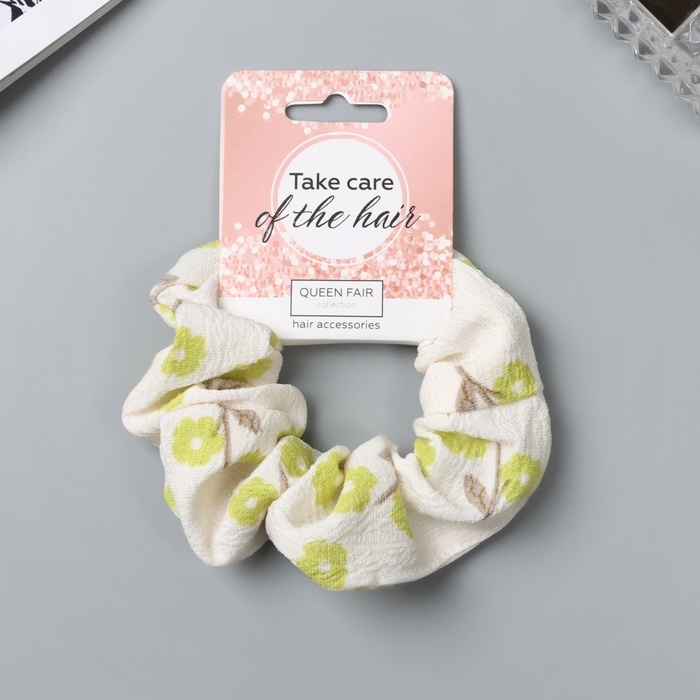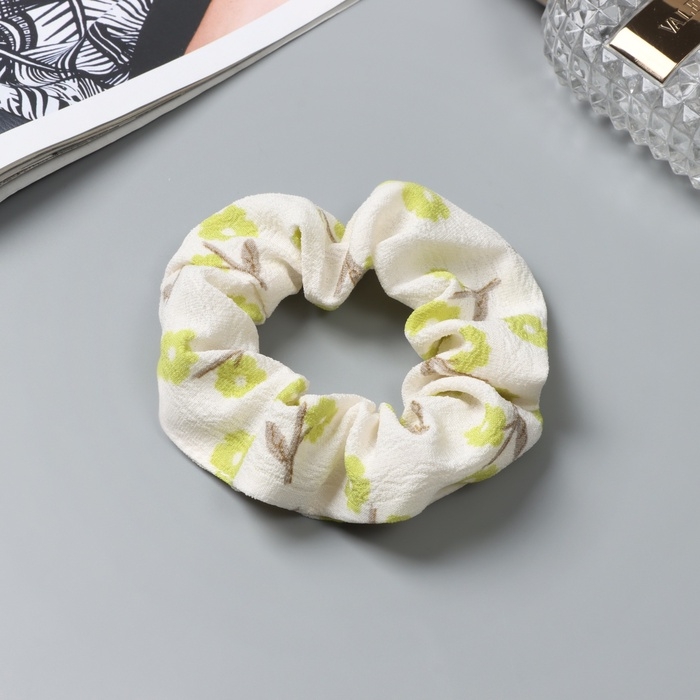 Резинка для волос "Орбита" цветы лето, 10 см, зелёно-белый
