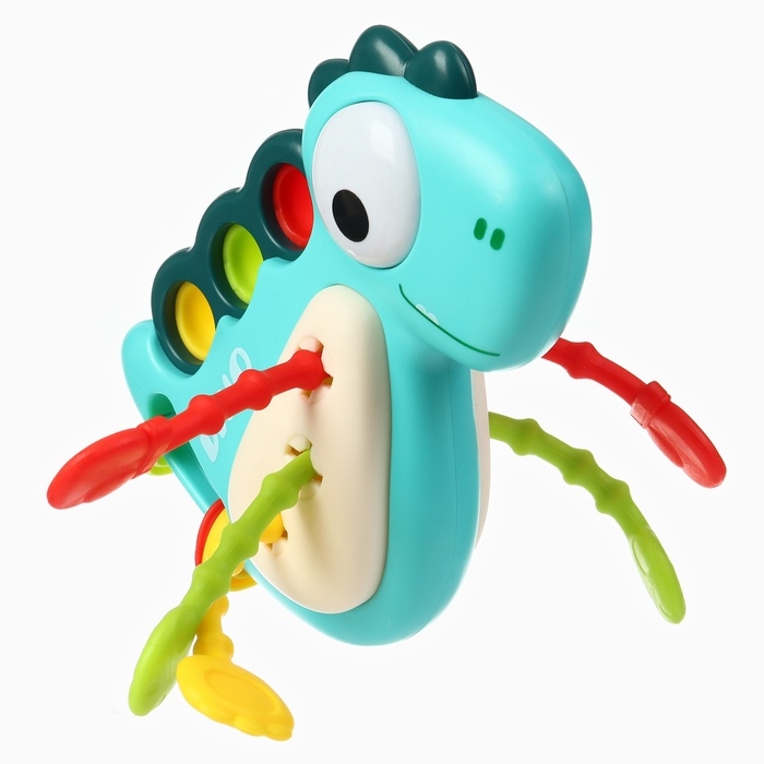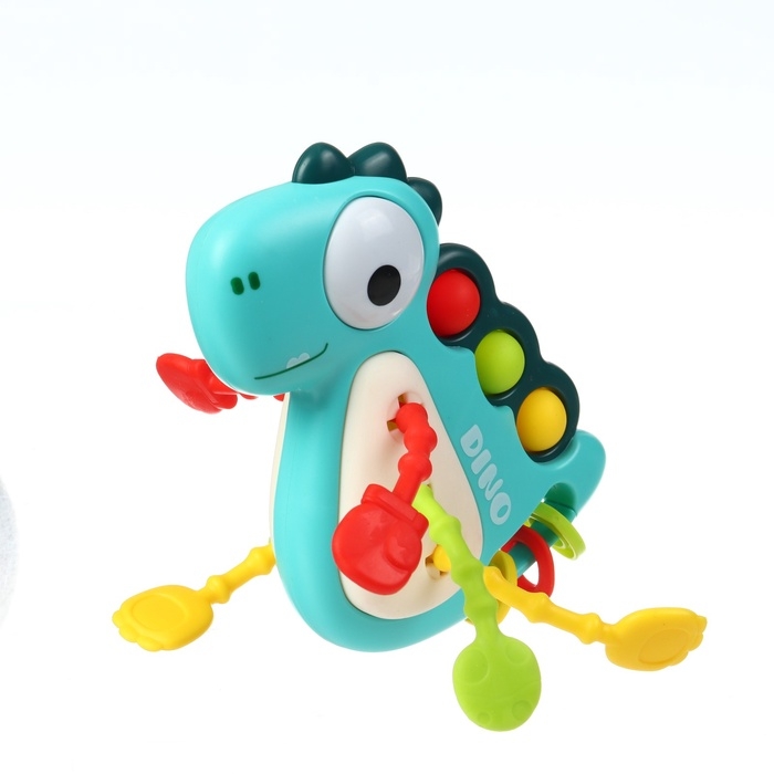 «Малыш Дино» выполнен из высококачественных материалов, безопасных для здоровья малыша. Внутри игрушки находятся разноцветные шарики, которые гремят при встряхивании. Это привлекает внимание ребёнка и стимулирует его слух.