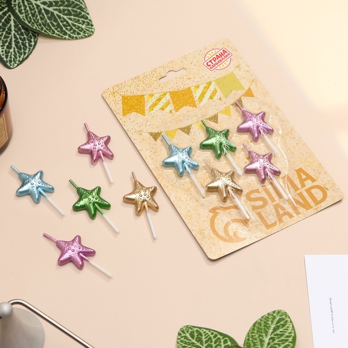Набор свечей для торта, 5 шт "Морские звезды", разноцветные