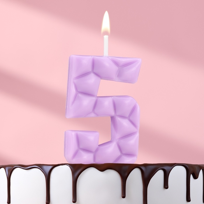 Свеча для торта "Лёд", цифра "5, сиреневая
