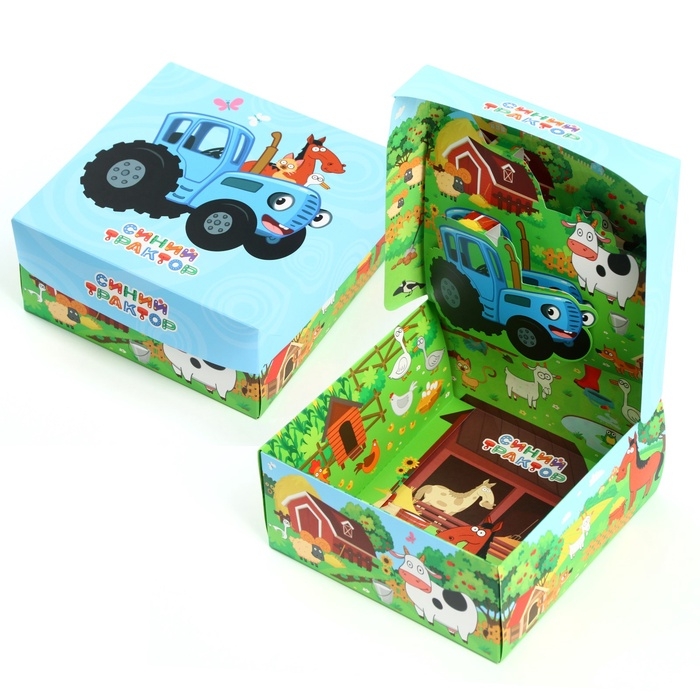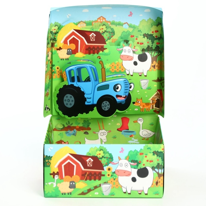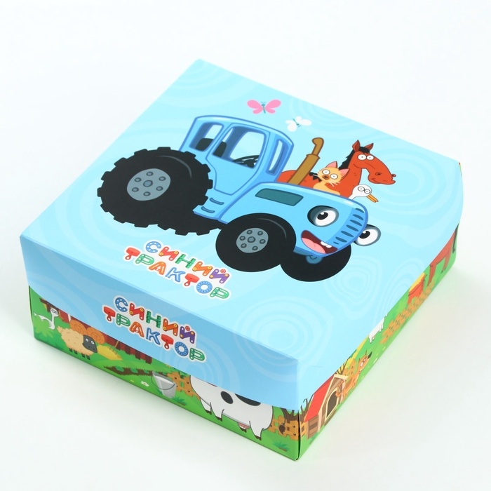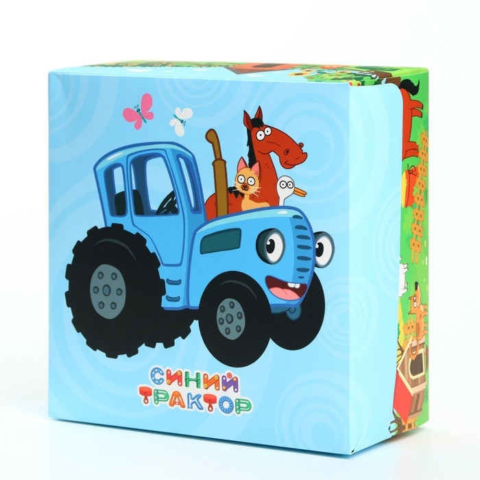 Подарочная коробка складная с 3Д, Синий трактор, 15х15х7 см