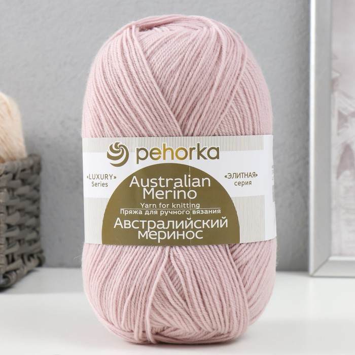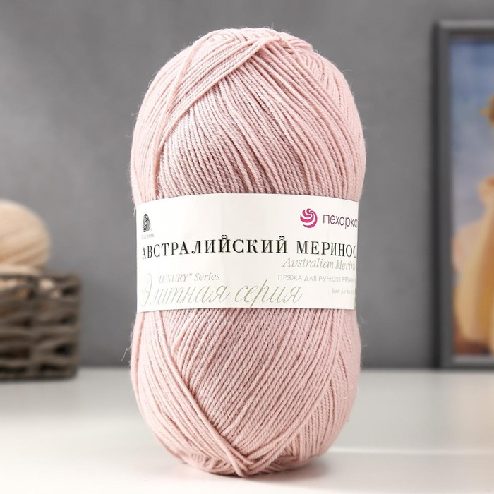 Пряжа "Австралийский меринос" 95%мер. шерсть,5% акрил объёмный 400м/100гр (374-Розовый беж)