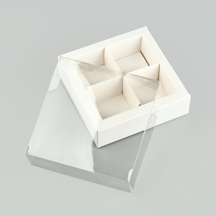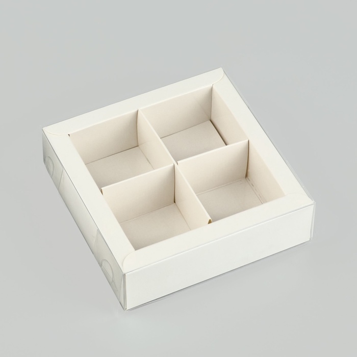 Коробка под 4 конфеты с ячейками «Белая», 10 х 10 х 3 см