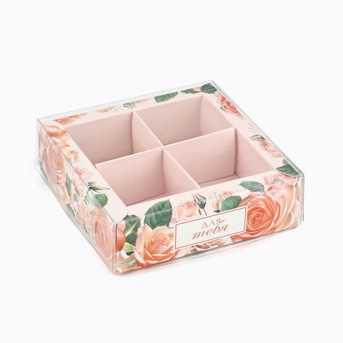 Коробка под 4 конфеты с ячейками «Для тебя», 10 х 10 х 3 см
