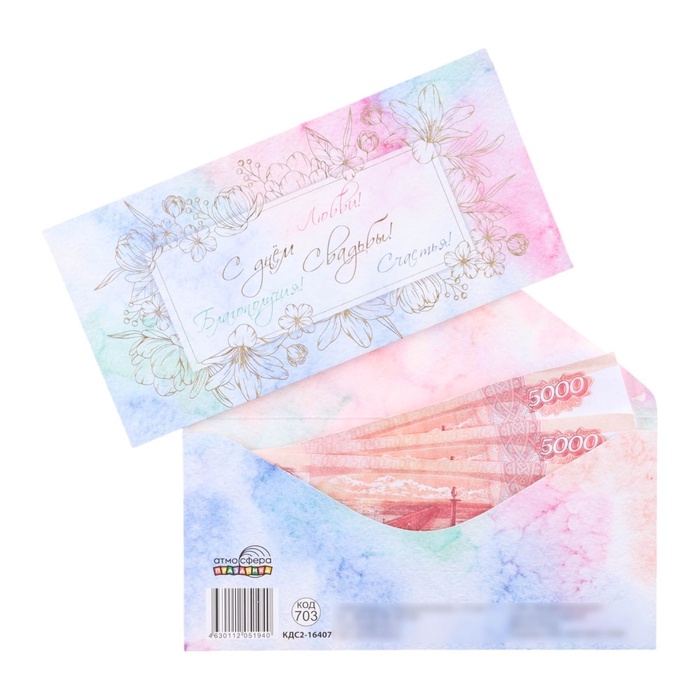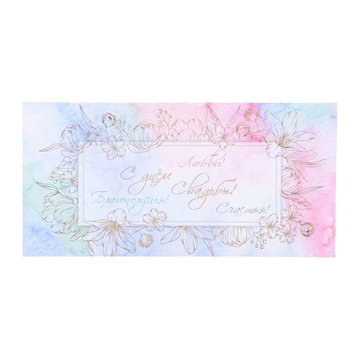 Конверт для денег "С Днём Свадьбы! Любви, благополучия, счастья!" тиснение, 8 х 17 см