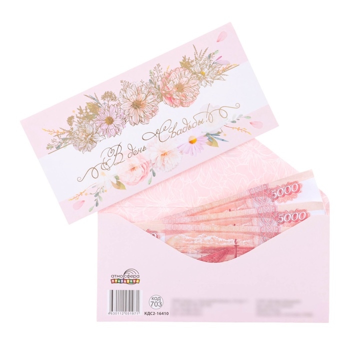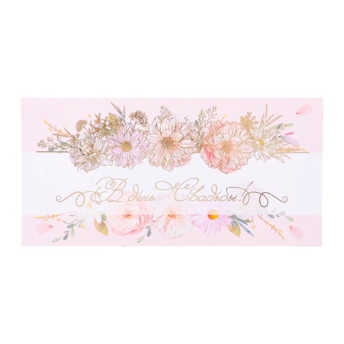 Конверт для денег "В День Свадьбы!" тиснение, белая полоса, 8 х 17 см