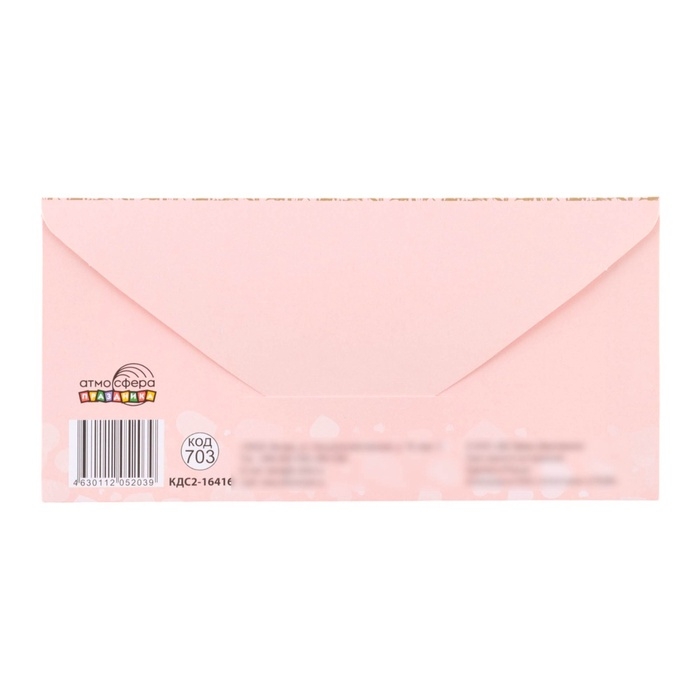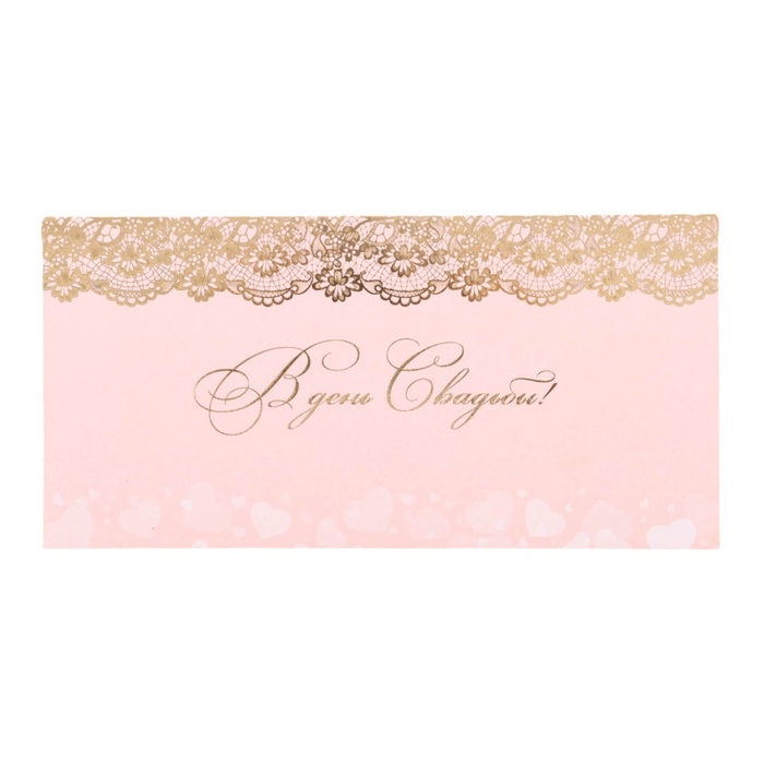 Конверт для денег "В День Свадьбы!" тиснение, золотистые узоры на розовом фоне, 8 х 17 см