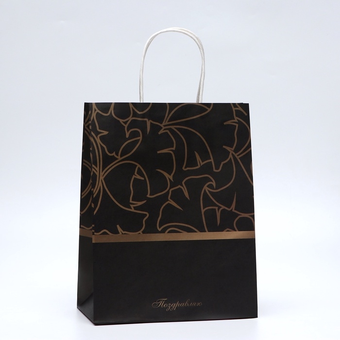 Пакет подарочный крафтовый "Поздравляю" 27 х 22 х 11 см, 120 г/м²