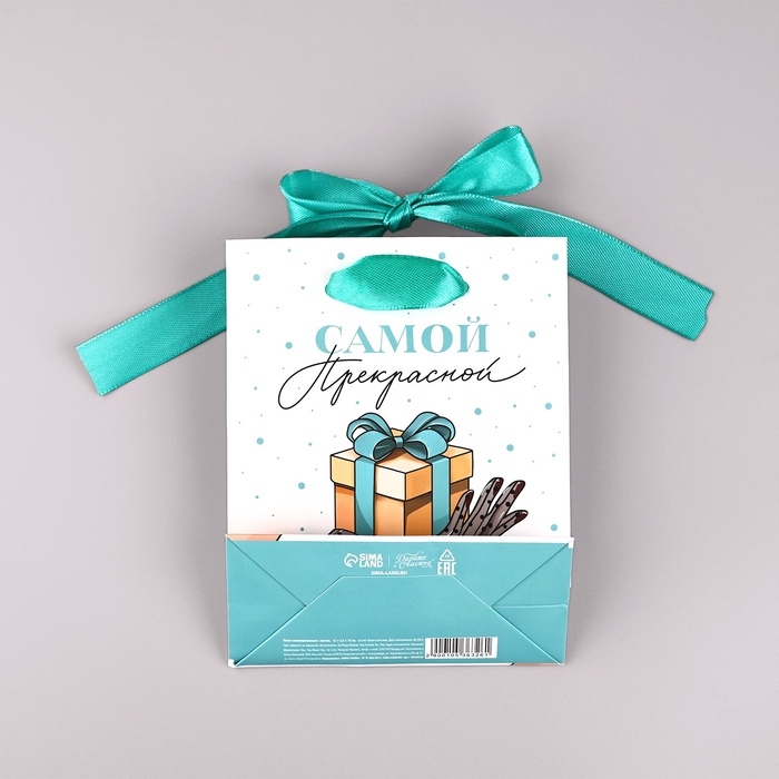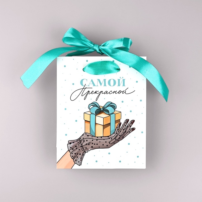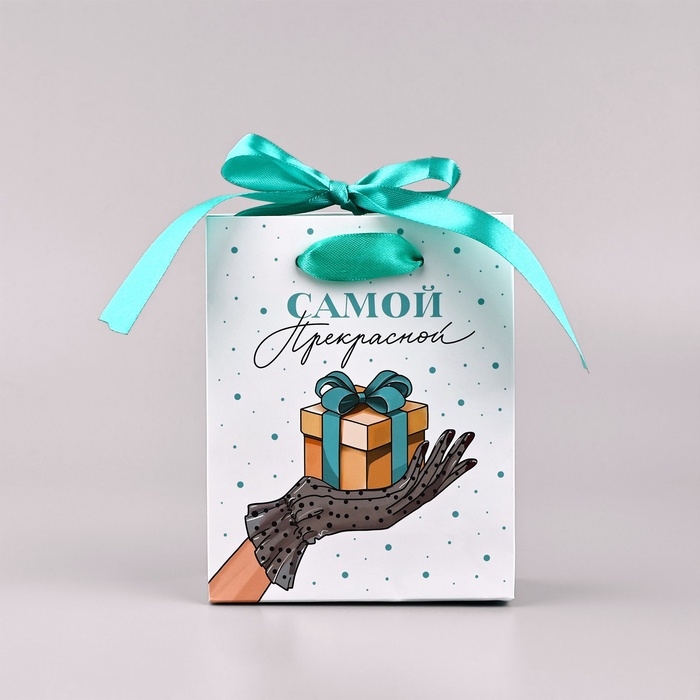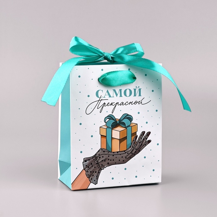 Пакет ламинированный с лентой «Самой прекрасной», S 12 × 5,5 × 15 см