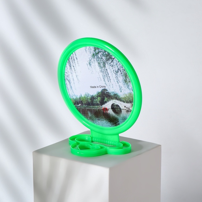 Зеркало настольное - подвесное «Круг», d зеркальной поверхности 9,5 см, цвет зелёный