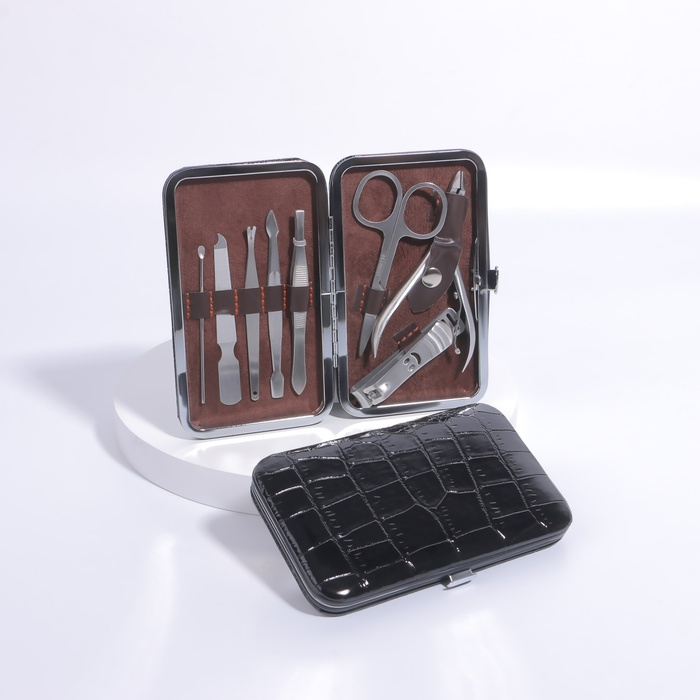 Набор маникюрный, 8 предметов, в футляре, цвет коричневый