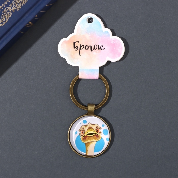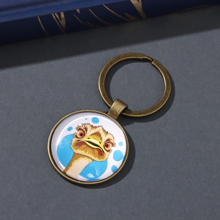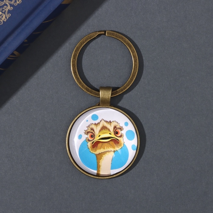 Брелок стекло, металл "Круг. Страус" d=3 см