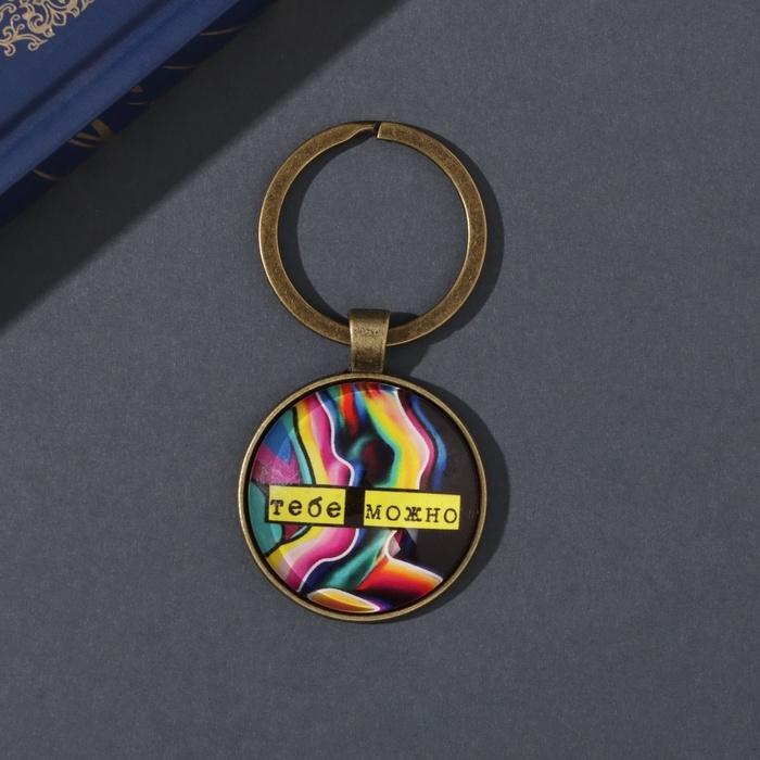 Брелок стекло, металл "Круг. Тебе можно" d=3 см