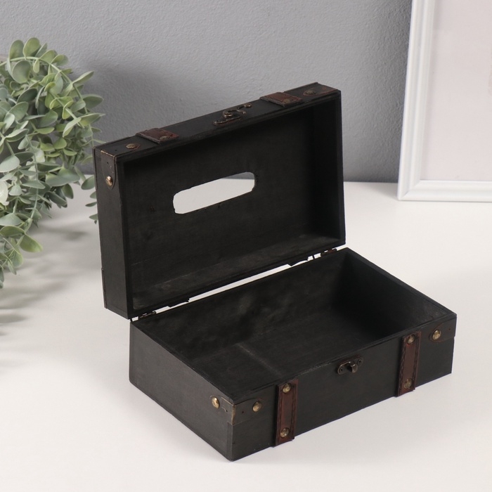 Шкатулка дерево салфетница "Черный чемодан" 14х23х9 см