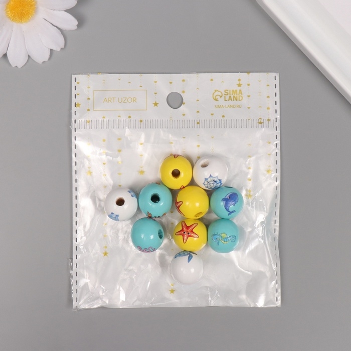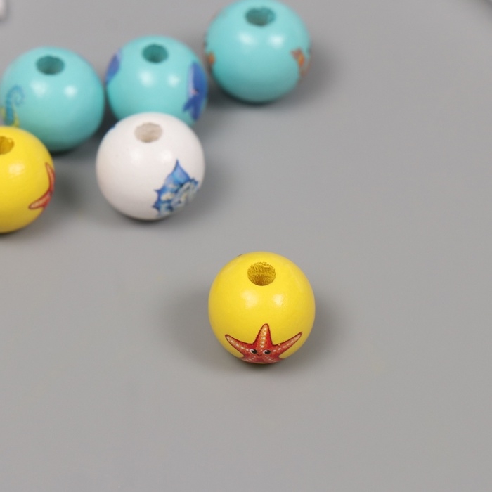 Бусины для творчества дерево "Морские жители" набор 10 шт 1,6х1,6х1,6 см