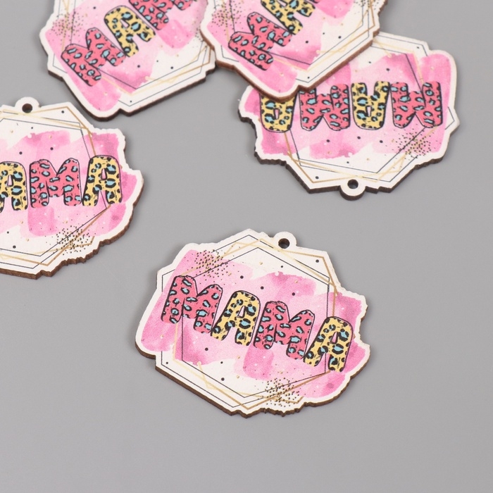 Декор для творчества дерево "Геометрический узор - мама" набор 5 шт 3,8х4,4х0,3 см