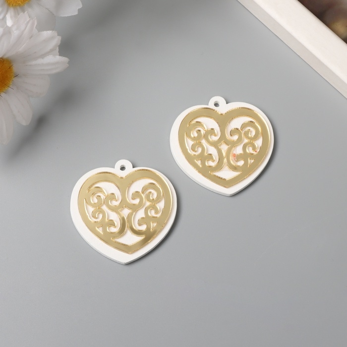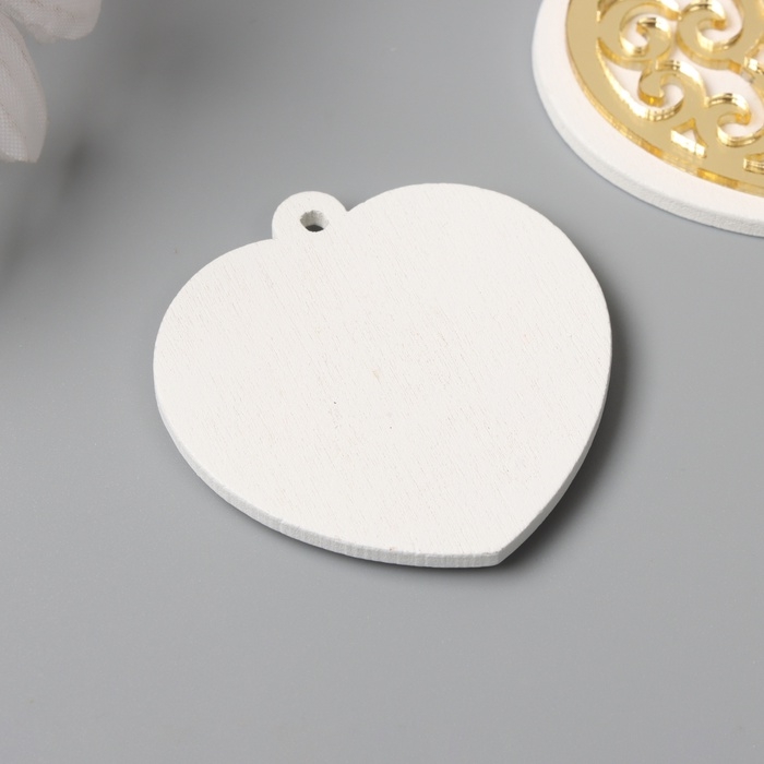 Декор для творчества дерево, пластик "Ажурное сердце" зеркальный набор 2 шт 4,2х4,3 см