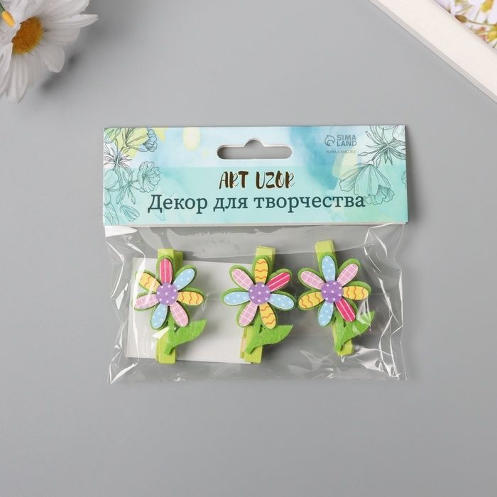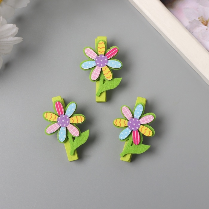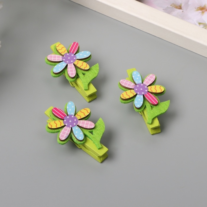 Декор для творчества дерево, фетр "Прищепка. Цветик-семицветик" набор 3 шт 1,2х3х4,8 см