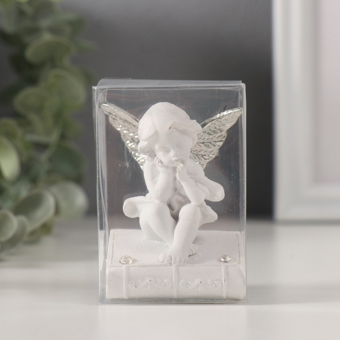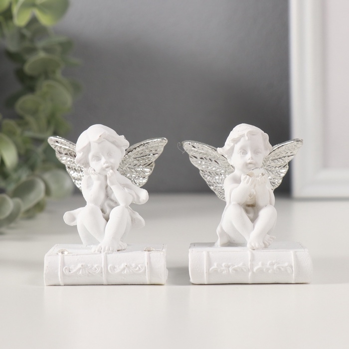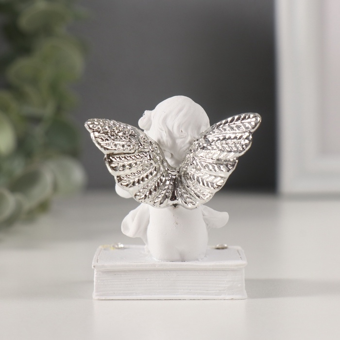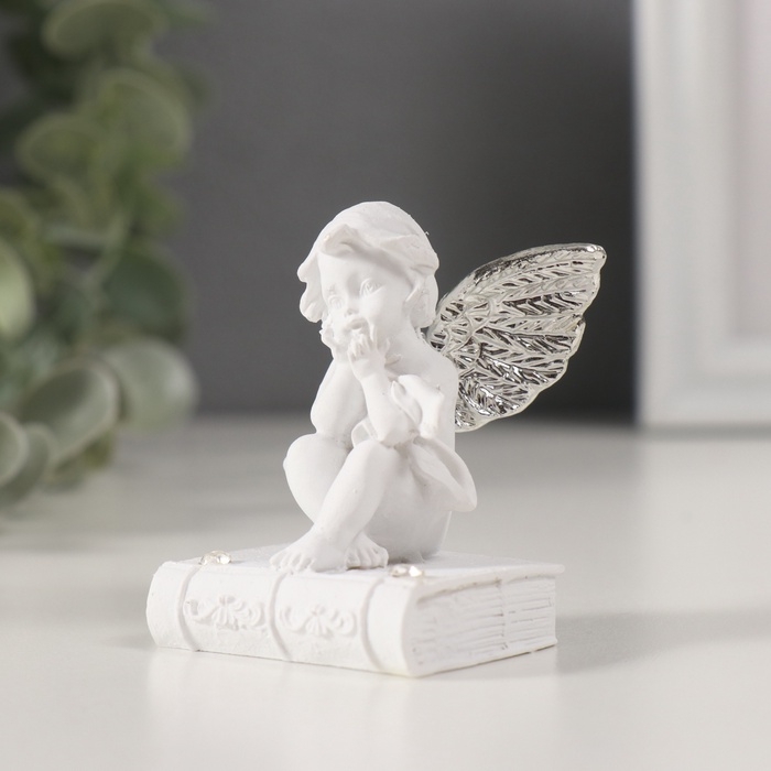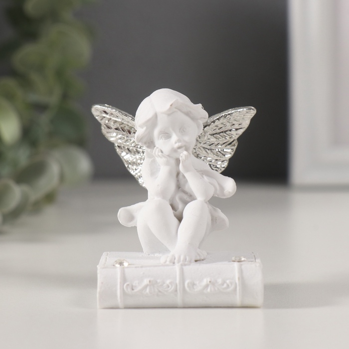 Сувенир полистоун "Ангелочек на книге с серебристыми крыльями" стразы МИКС 4х4,5х6,5 см