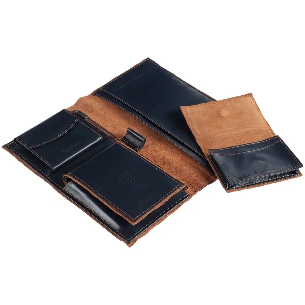 Изделия линейки Palermo изготовлены из гладкой кожи глубокого синего цвета с контрастной отделкой из замши. Оформленные в едином стиле, они легко собираются в подарочные наборы.