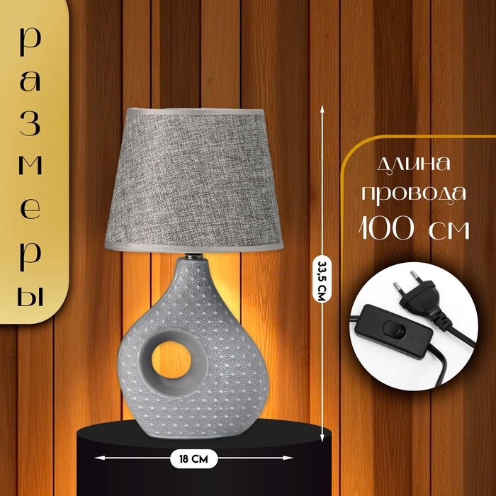 Настольная лампа с абажуром RISALUX «Маделин», Е14, 40 Вт, серый, 18×18×33.5 см