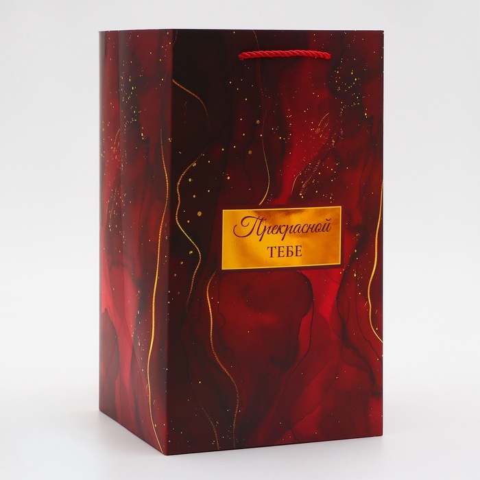 Пакет для цветов, ручка цепь, "Красный", с золотым тиснением, 15 х 10,5 х 10 см