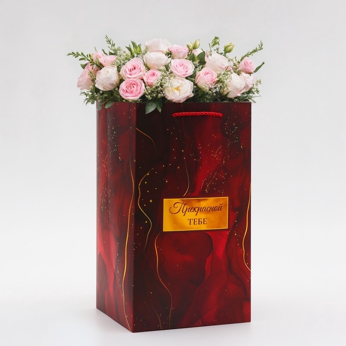 Сумка для цветов тиснение красная, "Самой прекрасной", влагостойкая, 23х15х9 см