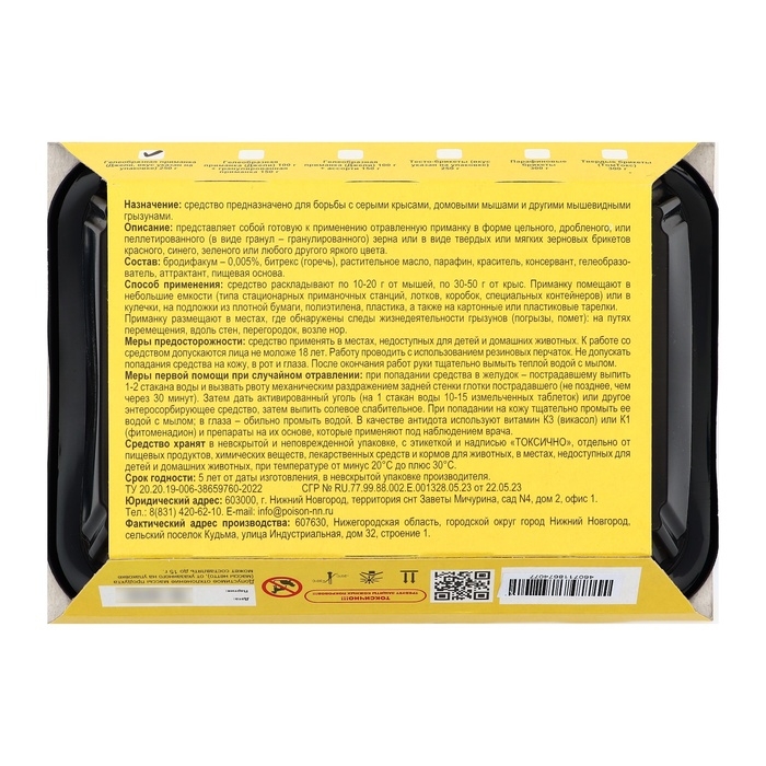 Приманка для защиты от грызунов станет незаменимым помощником в вашем доме. Эффективное средство безопасности обеспечит защиту от мышей и крыс, помогая поддерживать уют и чистоту в вашем жилище.