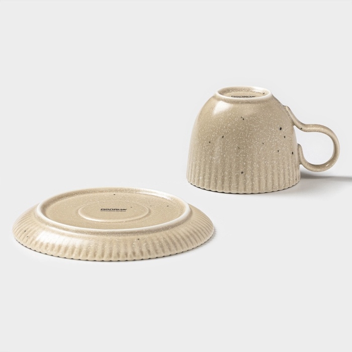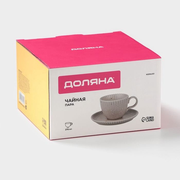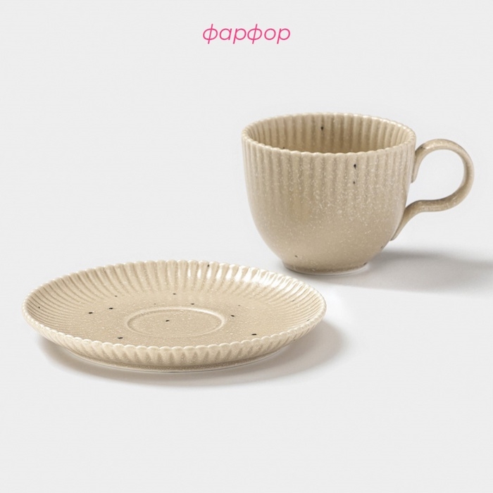Чайная пара Доляна «Коралл», 275 мл, фарфор, бежевая