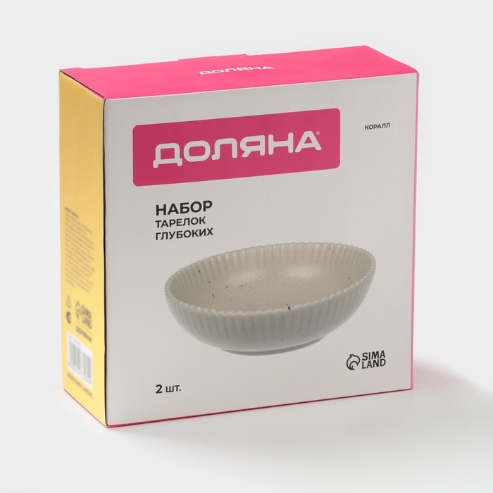 Тарелки глубокие Доляна «Коралл», 700 мл, d=18,2 см, набор 2 шт, фарфор, бежевые