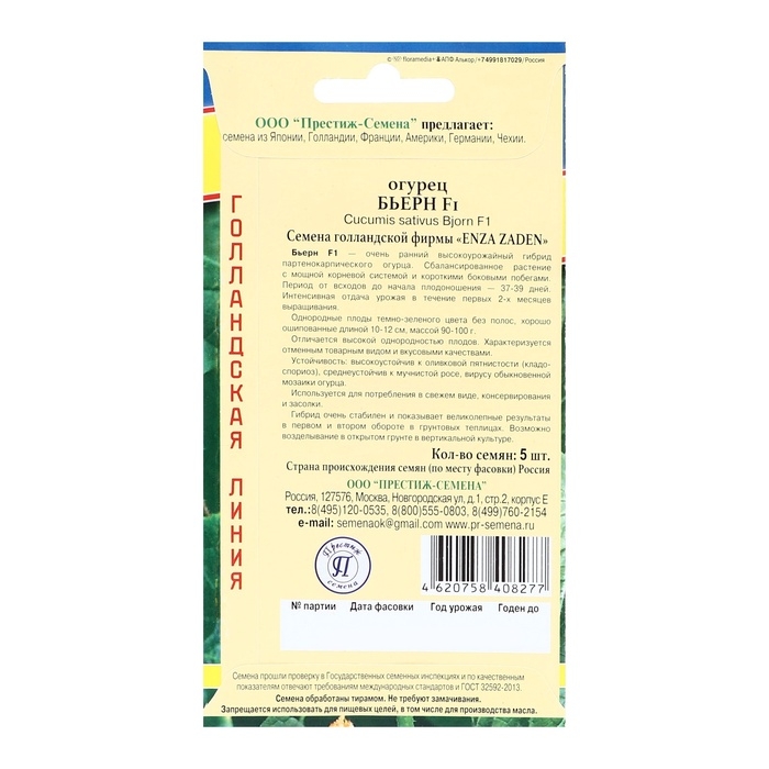 Семена огурца "Бьерн", F1,набор 5 шт