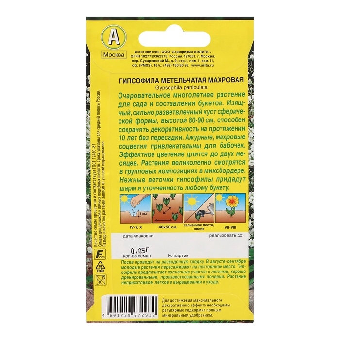 Гипсофила предпочитает открытый грунт. Важно выбрать солнечное место для посадки. Благодаря агрономическому сроку годности в 3 года, семена можно фермеровать в течение длительного времени.