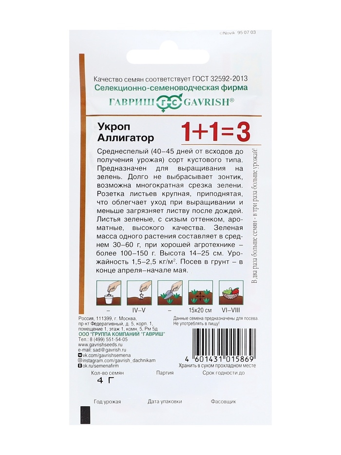 Семена Укроп 1+1 "Аллигатор",набор 5 шт