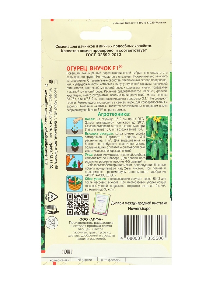 Семена огурца "Великолепная пятерка", F1,набор 5 шт