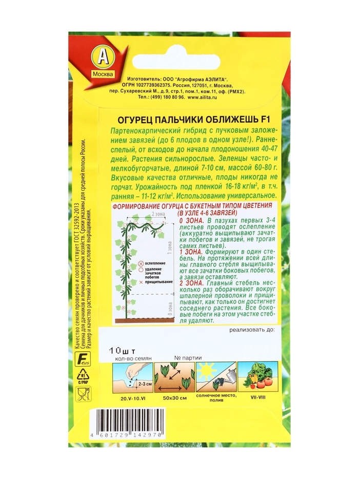 Семена Огурец "Пальчики оближешь F1", раннеспелый, партенокарпический, набор 5 шт