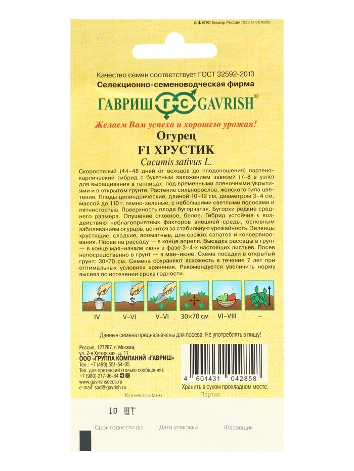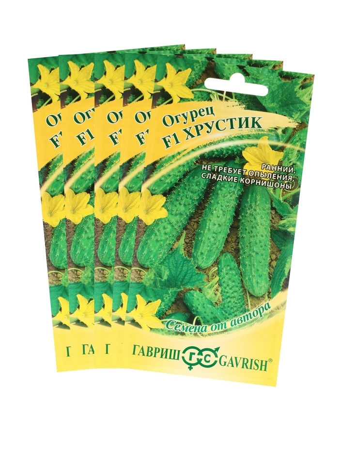Семена Огурец "Хрустик" F1, корнишон, скороспелый, партенокарпический, набор 5 шт