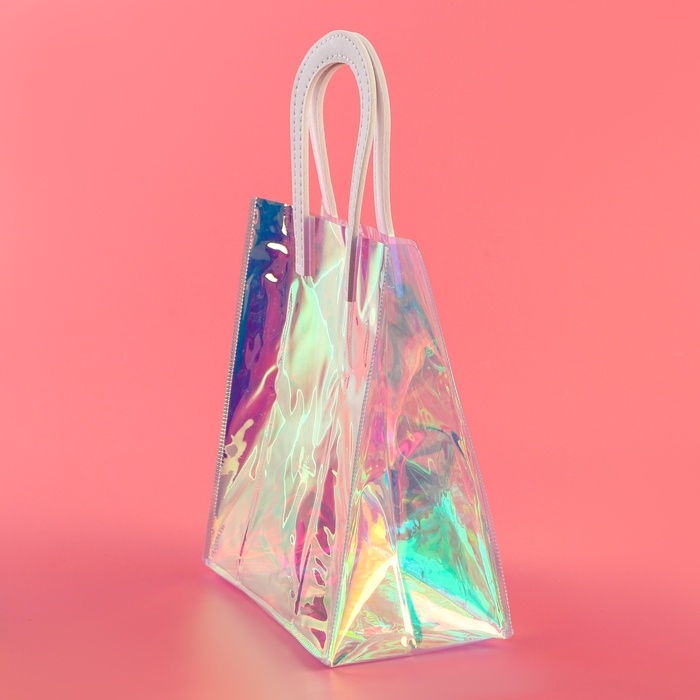 Пакет подарочный из ПВХ, белый, ирридисцентный, 20 х 18 х 10 см