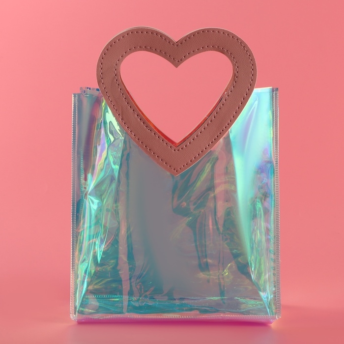 Пакет подарочный из ПВХ, розовый, ирридисцентный, 20 х 18 х 10 см