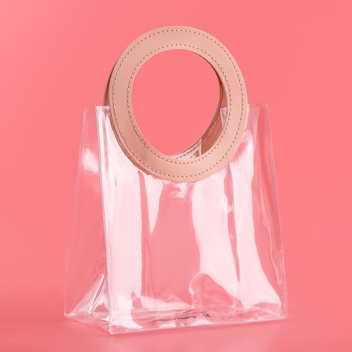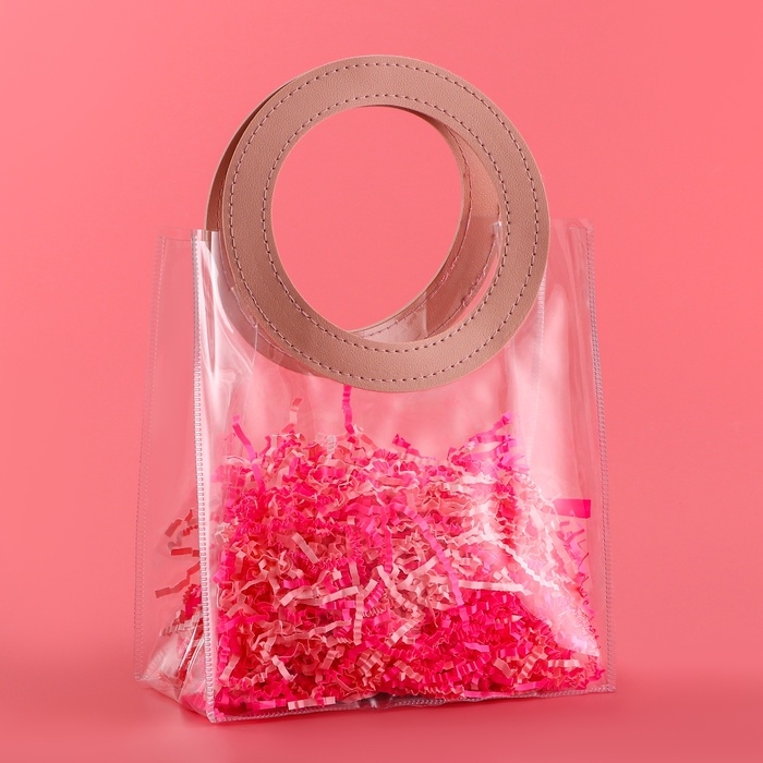 - Прозрачная сумочка с фигурной ручкой идеально подходит для различных видов подарков, начиная от косметики и заканчивая небольшими предметами интерьера.